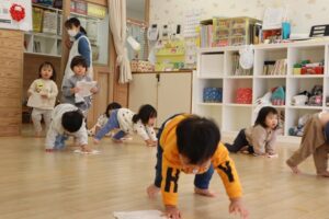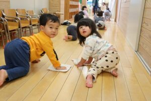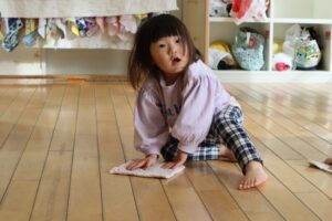 たくさん遊んだ廊下とお部屋のありがとうの気持ちを込めて、みんなで大掃除をしました。
