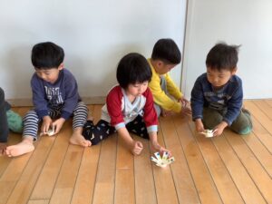 今日は、コマ遊びをしました。
