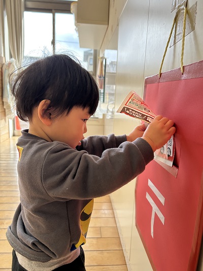 日の丸保育園 > 日の丸保育園ブログ > 『郵便屋さんになって』~べに組通信~ > IMG_8579 2026.01.21 IMG_8579 古い記事 新着記事 2026.01.21 『郵便屋さんになって』~べに組通信~ 2026.01.21 やまりんもやってきた!「木のつみき贈呈セレモニー」開催 2026.01.14 『お店屋さんごっこ』~年長通信~