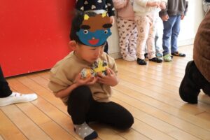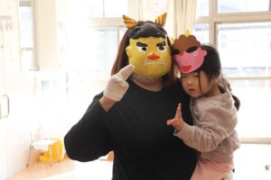 今日は節分のため、もも組さんのお部屋に鬼がやってきました!